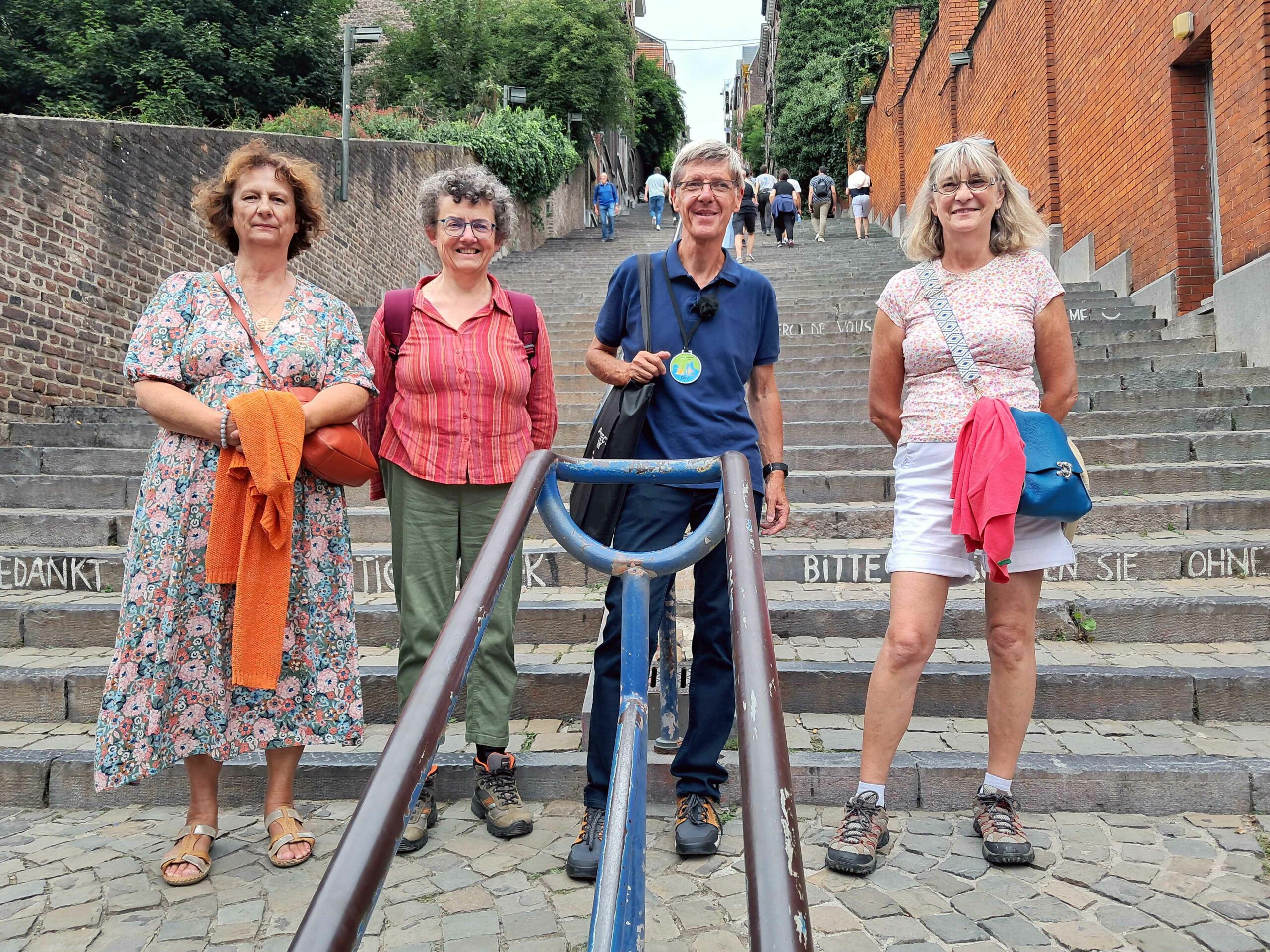 Notre équipe de Greeters Liégeois en action le 10 mai 2022 pour les balades des 41 élèves et leurs 3 professeurs de Français, Els, Sabine et Tine de l’école de Sint-Norbertus à Duffel.